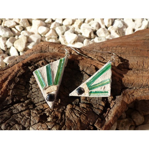 Boucle d'oreille en mosaique de verre à vitrail verre anis et d'ardoise